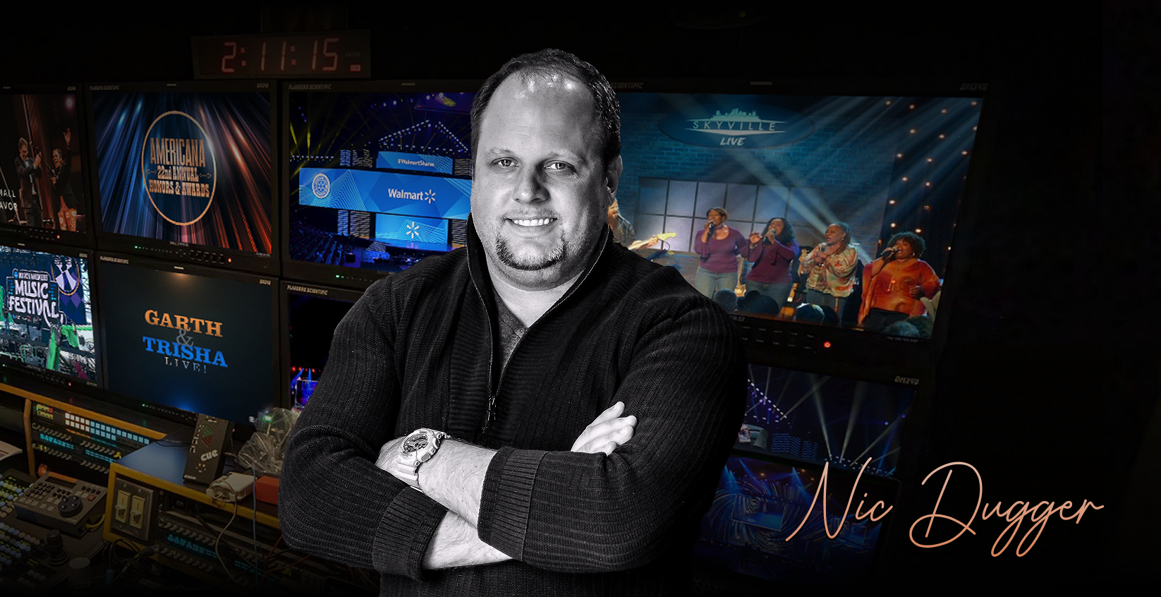 Nic Dugger is a 14-time Emmy Award-winning television producer and founder of TNDV: Television, a premier provider of mobile production facilities. A Jackson, Tennessee native, Nic began his career at 12 and honed his craft at Middle Tennessee State University, where he earned two Student Emmy nominations.